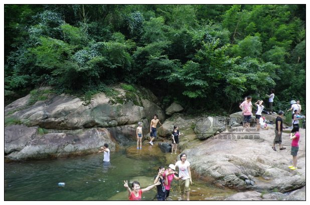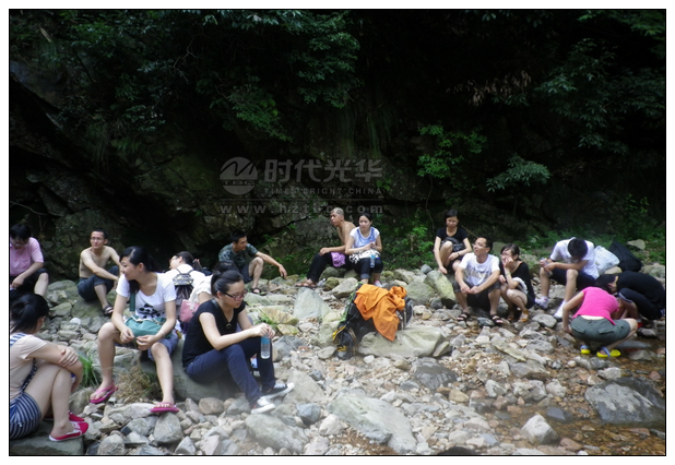 10:00:沿著盤山公路,到達(dá)海拔300米處的安吉水淋坑下車→整隊(duì)出發(fā),很快進(jìn)入峽谷,我們要向上做溯溪穿越了;