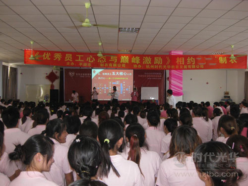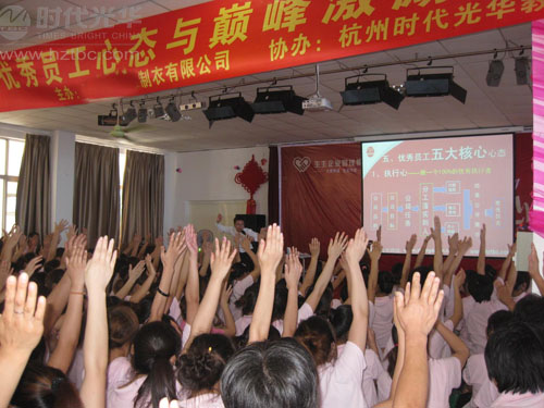 700多位全體員工參加了此次安排在周日的為期一天的培訓,此次培訓非常成功!學員紛紛表示,時代光華的品牌內訓課程對于現在80-90后的員工自我管理起到了有效的指導意義,同時此次培訓對于**制衣在重視員工素質培養方面,起到了很好的推動作用,在全體員工心目中鞏固樹立了“廠興我榮、廠衰我恥”、“與企業共同呼吸奮斗”的職工意識。