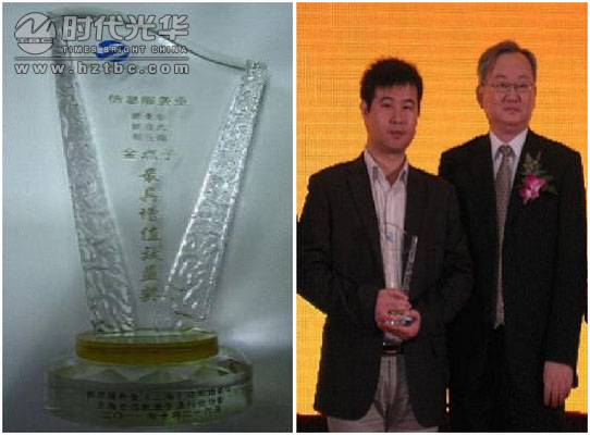 時代光華App團隊在此次活動中,通過與大量企業、院校的方案對比,經過初審、評審、專家復審考評之后,獲得了“新業態、新模式、新應用金點子”“最具增值效益獎”,獲獎的還有中國電信、中國聯通、盛大文學、艾瑞咨詢、快錢等企業。與會的工信部及上海市領導為獲獎者頒獎。