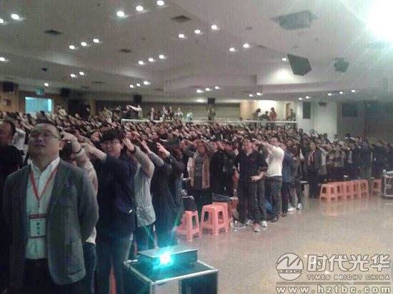 (上圖為在主持人的帶領下,會員們參與到課間游戲中,緩解了聽課帶來的疲倦,拉近了彼此之間的距離。)