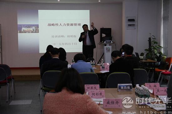 2015年4月10日,杭州時代光華特邀TTT國際職業培訓師邱明俊老師,帶來《戰略性人力資源管理沙盤》精品小班課程。一席筆挺的西裝,邱老師一上臺其專業的形象加之幽默的開場,立即活躍了現場氣氛!