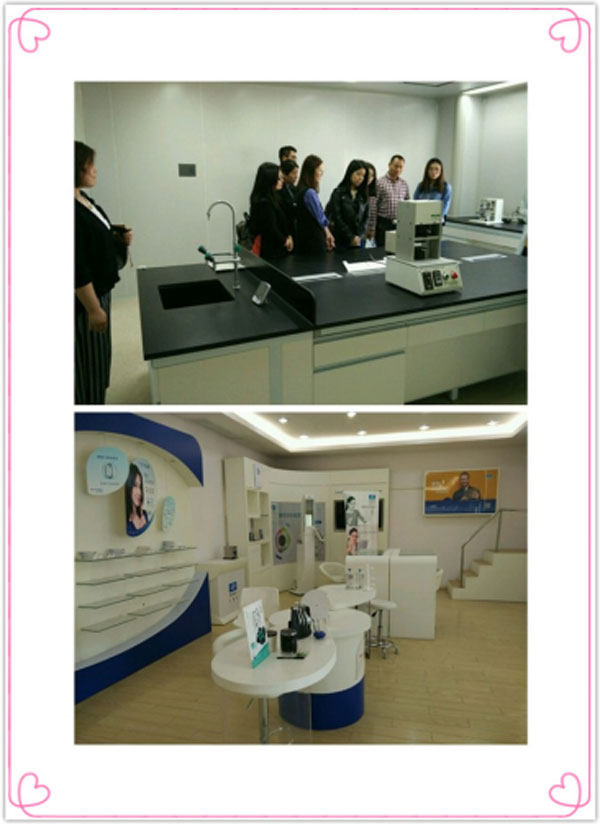 寶島眼鏡總部產品檢測中心參觀:到達寶島眼鏡后,我們受到了寶島眼鏡培訓運營部門全體人員熱情招待。大家分兩個批次隨寶島眼鏡負責人前去參觀產品檢測中心。檢測中心檢測員帶領我們參觀了3個檢測室,分別是隱形眼鏡檢測 鏡片眼鏡檢測和鏡框檢測。每一個檢測室都有專門的檢測員為我們講解檢測過程及內容。
