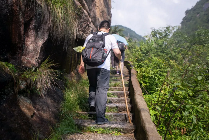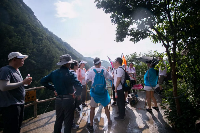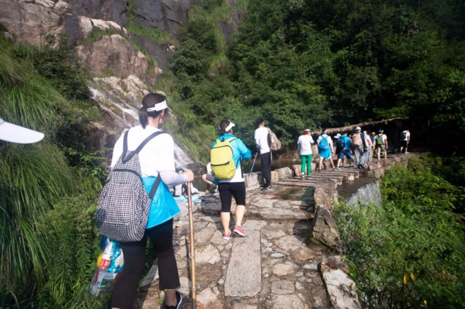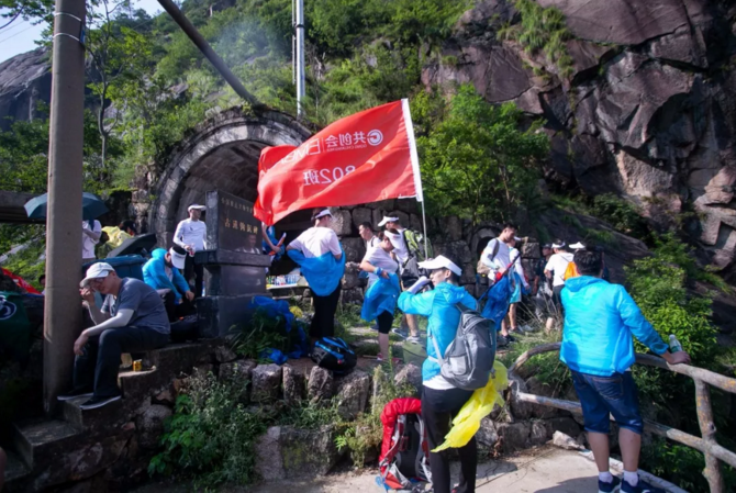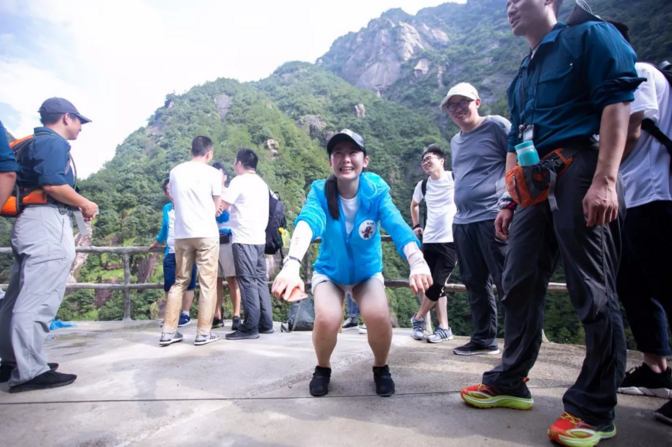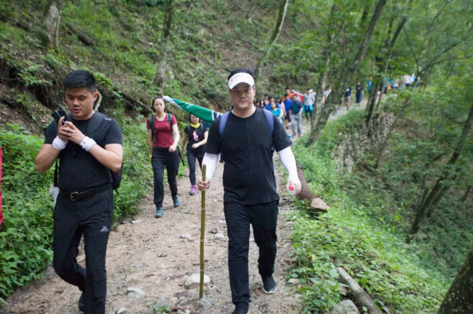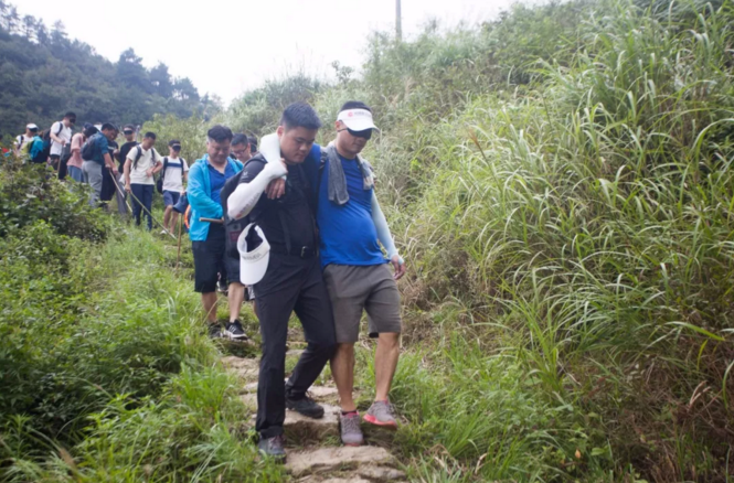 即刻出發(fā),在地勢險惡、荊棘叢生、陡峭山路上,EMBA802班團結一心,戰(zhàn)勝自然環(huán)境的艱險,打破內(nèi)心世界的阻礙,縱使炎炎烈日,仍有“會當凌絕頂,一覽眾山小”的決心。領導和教練們更是以身作則,帶領大家奮勇攀登,大家彼此攙扶,相互幫助、鼓勁,不讓一個人掉隊,充分發(fā)揚了不畏險阻、共同前進的團結協(xié)作精神。