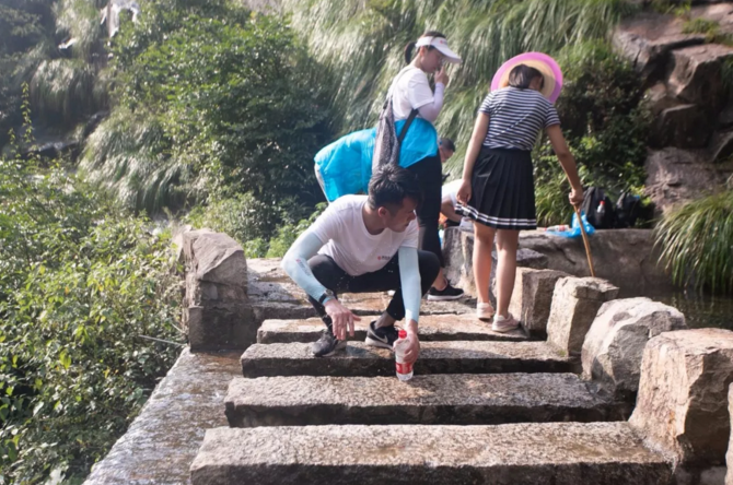 天空澄碧,遠山含黛,清風微拂。同學們個個熱情高漲,興致勃勃,在山腳下整裝待發(fā)。出發(fā)前,由領隊簡單介紹本次徽杭之旅,強調(diào)了爬山中的注意事項,提醒大家不要隨便離隊,時刻牢記安全第一,鼓勵大家成功登頂;另外還帶領著同學們一起游戲互動,培養(yǎng)學員間感情和團隊意識。