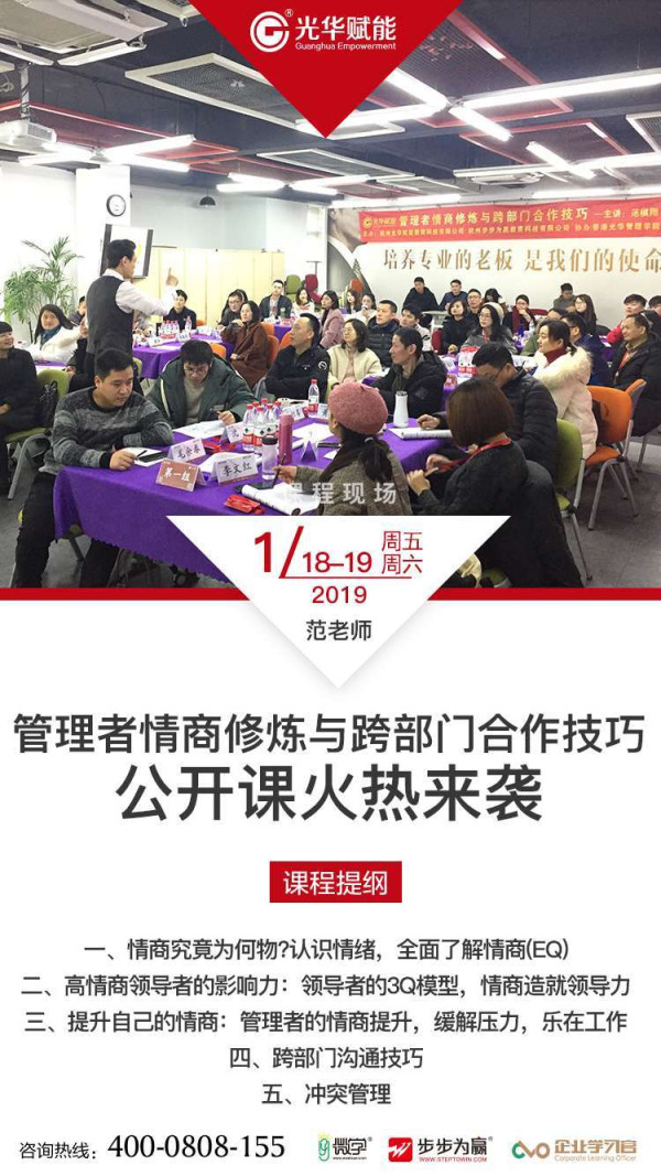 2019年1月18-19日,光華公開課《管理者情商修煉與跨部門合作技巧》火熱登場!最近很火的一個問題是“啥是佩奇?”,就是只要你擁有一張光華公開課學習卡,覆蓋企業所有重要崗位的實戰課程我們幫你一鍵“配齊”!