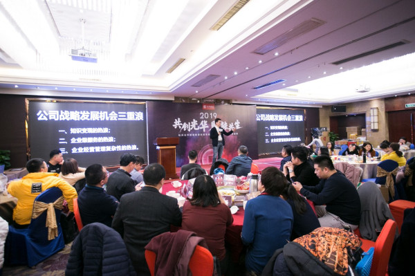 光華賦能董事長方永飛先生為年會致辭,對各位家人過去一年的辛勤付出表示肯定和誠摯的問候。他說到,如果說18年打基礎的一年,19年將是一個重要的年份,公司的定位想法更重要;公司的目標是成就一個共創共生的公司;隨后,方總提出公司戰略發展機會三重熱浪:一、知識變現的熱浪;二、企業級服務的熱浪;三、企業經營管理復雜性的熱浪,并號召員工們不能處在老的軌道,要抓住機遇,完成新舊軌道的更替;同時,方總還回顧18年光華的亮點時刻,共創會EMBA5個班、年度論壇、貓頭鷹獎等,并展望2019我們的更進一步。相信在方總的正確引領下,我們滿懷信心與期望!