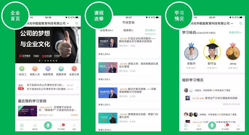 在微學事業部負責人演講的過程中,我們了解到微學線上培訓APP,是圍繞學習為中心的模式,其中分為三大模塊: