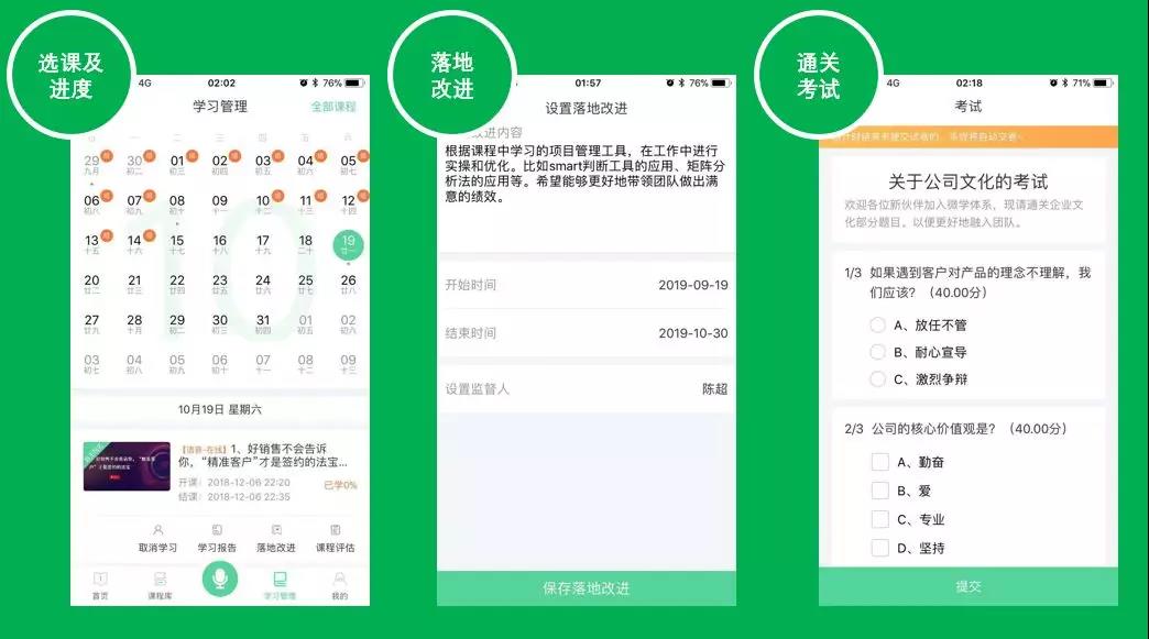 三大模塊清晰的羅列出了,培養員工所需要的各個步驟,排除了各個環節繁瑣的溝通環節,實現了線上溝通的及時性、便利性和學習效率性。