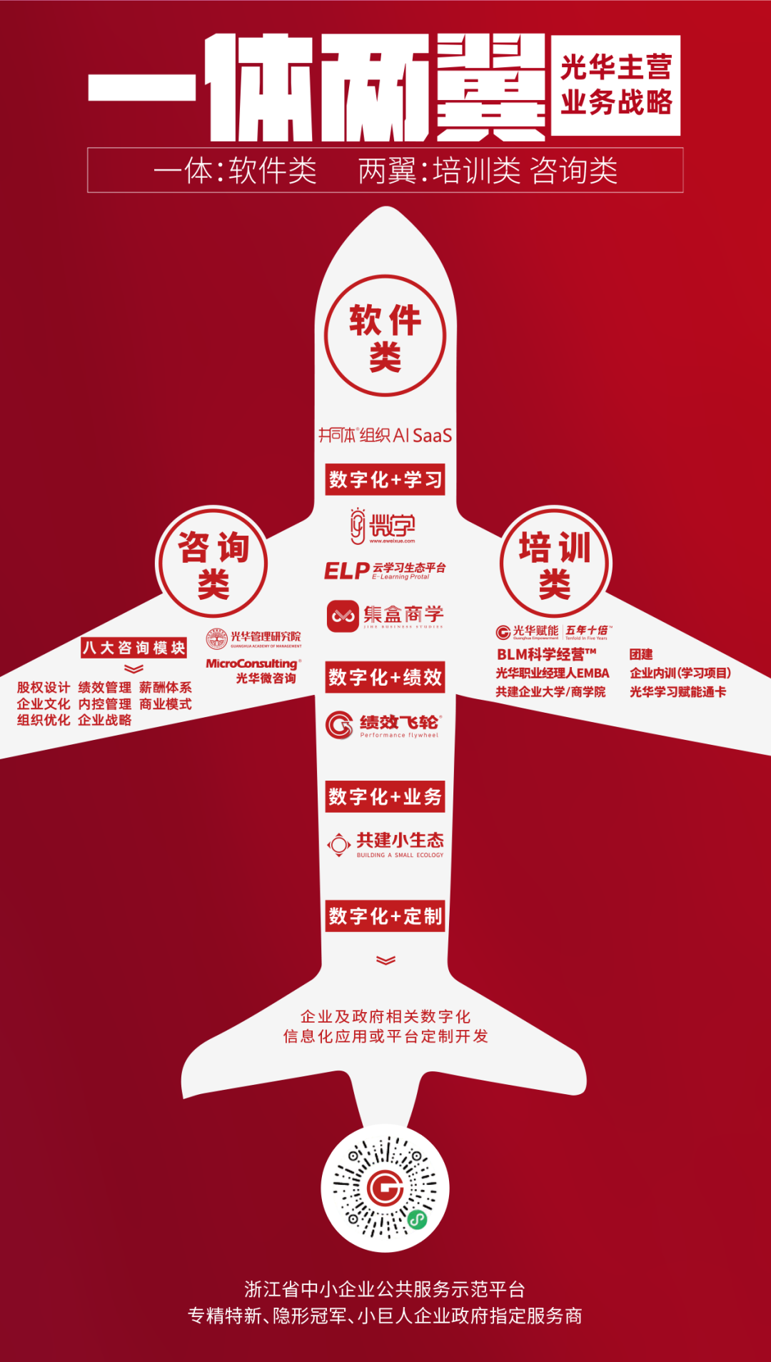 方永飛認(rèn)為光華賦能的業(yè)務(wù)模式是“一體兩翼”,一體就是軟件,兩翼是培訓(xùn)和咨詢。過往一直是培訓(xùn)和咨詢?yōu)橹鳎恢毕M馊A實(shí)現(xiàn)數(shù)字化業(yè)務(wù)和組織變革,這是光華的“第二次創(chuàng)業(yè)”。