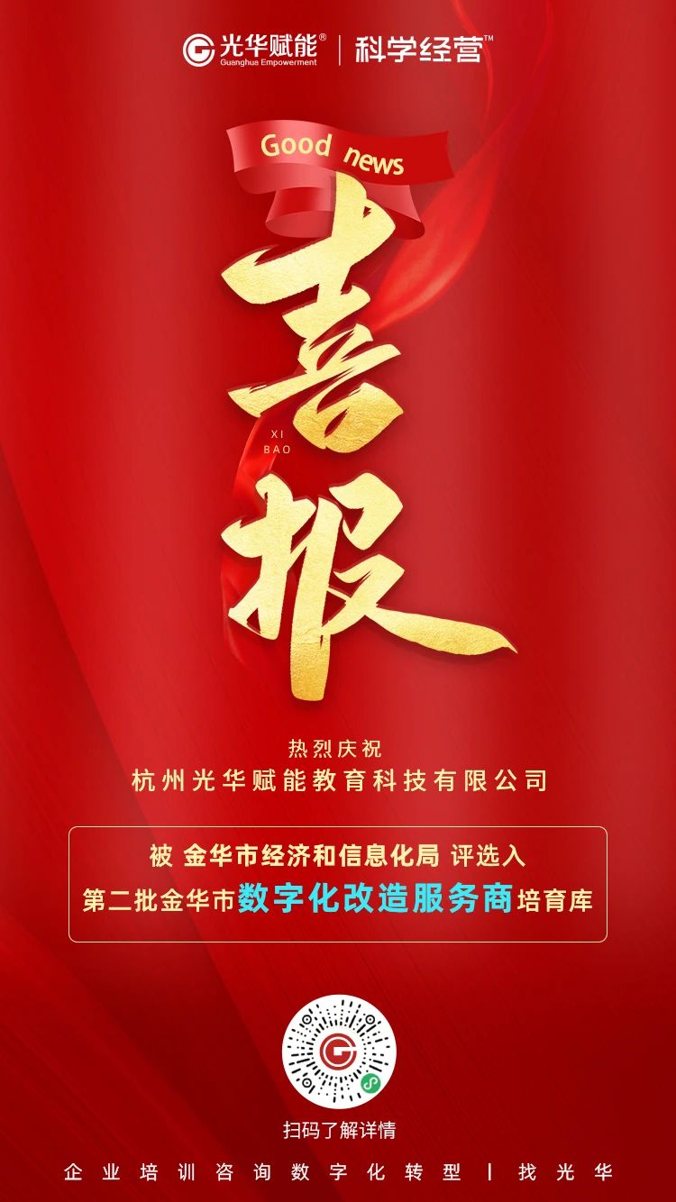 喜報?光華資質再+1!光華成功入選金華市數字化改造服務商培育庫