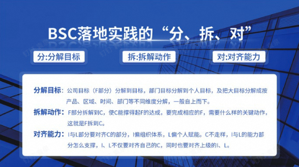 “落地方法分拆對”進一步細化了戰略執行的步驟,通過分解目標、拆解行動和對齊能力,確保每個員工的工作與企業的戰略目標緊密相連,這種方法增強了執行的精準性,幫助企業在復雜的環境中保持一致性和靈活性。