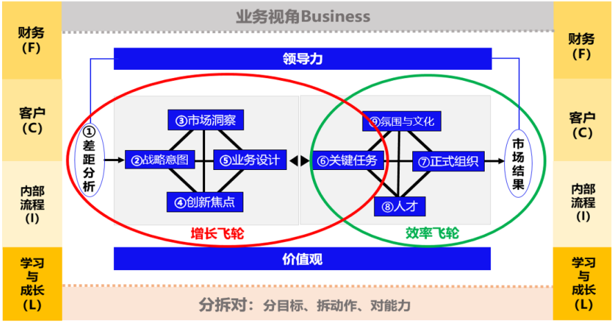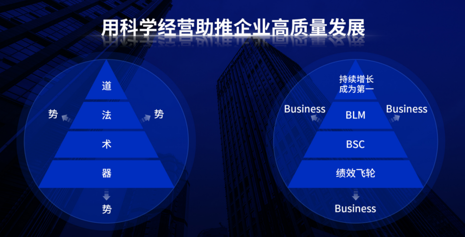科學經營以BLM(業務領先模型)為內核,形成了一個視角、兩個飛輪、三個動作、四個角度、九個模塊、十八個落地工具、三十六個關鍵數據構成的系統應用框架,再結合分拆對-解碼與執行落地方法,助推企業越做越好。