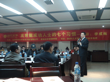 在十一月二十日至二十一日,五十余位企業精英與李成林老師相聚在時代光華的公開課堂上,以《高效能成功人士的七個習慣》為課題,開展為期兩天的研討學習。在學習的一開始,第一環節便是破冰與團隊建設,組成四個大隊,在十分鐘之內選舉出隊長,設計好隊名,隊呼,然后作一個獨特的團隊展示。分別形成了“六朵金花隊”、“龍飛鳳舞隊”、“螞蟻部落隊”、“高人隊”, 同時老師也布置了競賽規則,所有回答老師問題的隊員都將有機會抽到老師手中的積分卡為所在的團隊加分。通過這一個環節來自不同行業不同單位的精英們各自作了交流與認識,隊與隊的競爭氛圍也就此被點燃了!
