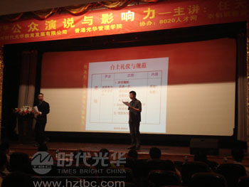公眾演說的時候,從上臺的那一刻你就成了眾人的目光,光是克服了緊張是遠遠不夠的,還必須知道相應(yīng)的講臺禮儀與規(guī)范。比如,如何上臺?有哪一些細節(jié)是該注意的?在臺上的時候,稿子應(yīng)該怎么拿,手該怎么放,腳該如何站,麥克風(fēng)該怎么拿?演說完畢如何退場?聲音該如何控制?如何應(yīng)對臺下的眼光?這一些細小而又重要的問題都在課堂上用演練的方式傳授給了學(xué)員,學(xué)員通過上臺模擬,由臺下的學(xué)員進行點評,從而用使大家印象深刻。