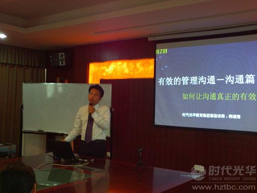 市場從2009年公司遷址后,正處于一個快速發展的鼎盛時期,對人才能力上也提出了更高的要求,首先需要提升的就是公司中高層管理人員的溝通協調能力。2010年6月21日,浙江金華**公司特邀時代光華高級講師韓增海